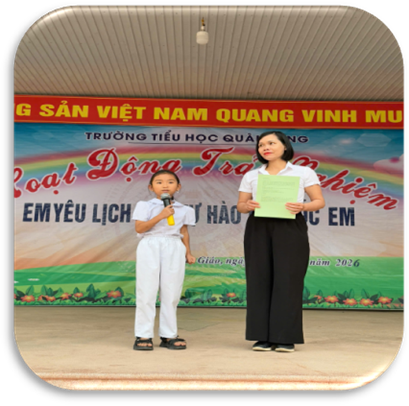 Nhằm giúp học sinh hiểu sâu sắc hơn về những giá trị lịch sử thiêng liêng, đồng thời tạo môi trường trải nghiệm bổ ích, Liên đội Trường Tiểu học Quài Cang đã tổ chức hoạt động trải nghiệm với chủ đề “Em yêu lịch sử - Tự hào Tổ quốc em”, thu hút sự tham gia tích cực của cán bộ, giáo viên và học sinh toàn trường.