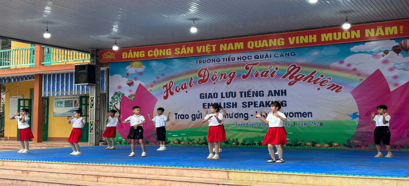Hòa chung không khí hân hoan chào mừng International Women's Day (8/3) – ngày tôn vinh những người phụ nữ tuyệt vời trên khắp thế giới. Sáng ngày 06/03/2026 trường TH Quài Cang đã tổ chức buổi giao lưu tiếng Anh với chủ đề “Trao gửi yêu thương – Tri ân phụ nữ”. Đây không chỉ là dịp để bày tỏ lòng biết ơn mà còn là cơ hội để mỗi chúng ta gửi gắm những tình cảm chân thành nhất đến bà, mẹ, cô giáo và tất cả những người phụ nữ thân yêu.