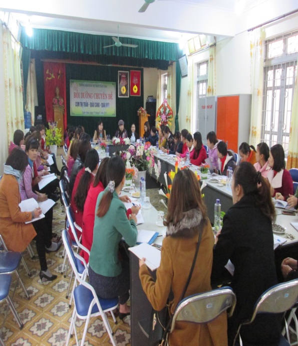 (Hình ảnh giáo viên MN thị trấn tham gia bồi dưỡng chuyên đề cấp huyện)