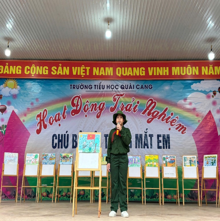 Trong không khí thi đua chào mừng ngày thành lập Quân đội nhân dân Việt Nam và ngày Quốc phòng toàn dân 22/12, học Sinh Tiểu ọc Quài Cang say sưa với chủ đề “Chú Bộ Đội Trong Mắt Em” nhằm bồi đắp truyền thống yêu nước, lòng tự hào dân tộc và thể hiện sự tri ân sâu sắc tới Quân đội Nhân dân Việt Nam anh hùng. Trường Tiểu học Quài Cang đã tổ chức hoạt động vô cùng ý nghĩa và thu hút: Cuộc thi vẽ tranh với chủ đề “Chú bộ đội trong mắt em”. Đây là một sân chơi sáng tạo, nơi những nét cọ ngây thơ, hồn nhiên của các em học sinh khối 1 đến khối 5 được dịp thể hiện tình cảm kính trọng và ngưỡng mộ dành cho những người lính Cụ Hồ.