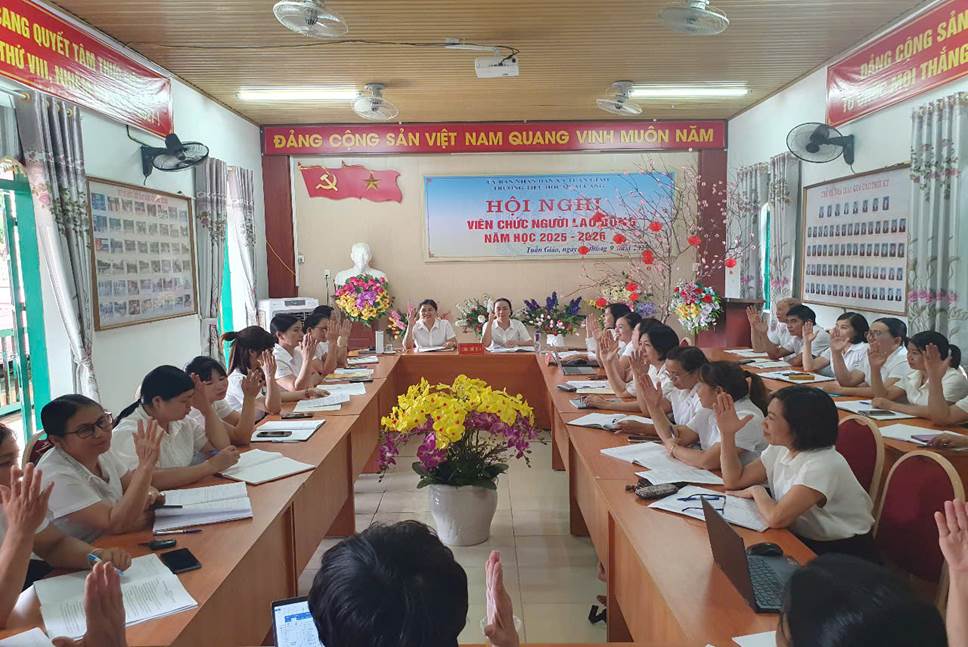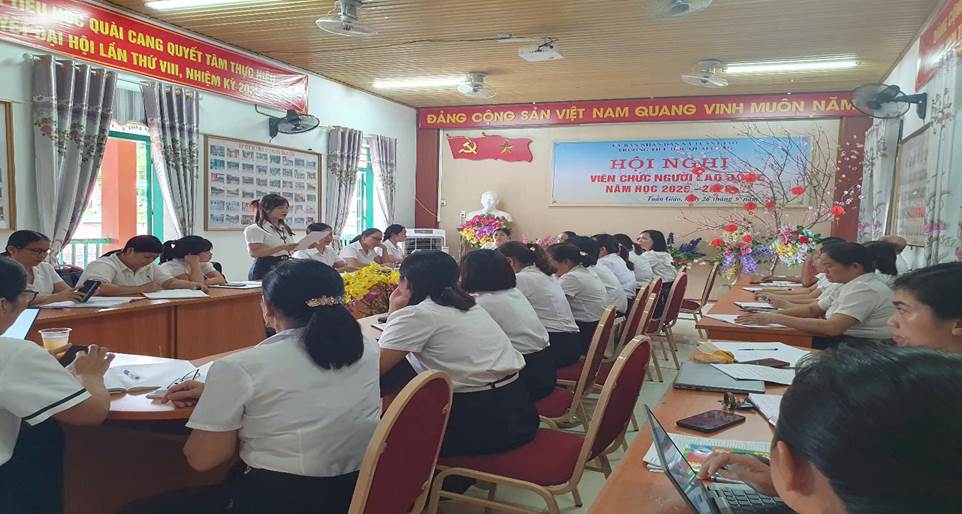 Tại Trường Tiểu học Quài Cang – một ngôi trường nằm trên mảnh đất giàu truyền thống và giàu khát vọng của xã Tuần Giáo, tỉnh Điện Biên – hội nghị năm nay được tổ chức trong không khí trang trọng nhưng cũng đầy ấm áp, gần gũi. Sự hiện diện đầy đủ của cán bộ, giáo viên, nhân viên nhà trường thể hiện tinh thần trách nhiệm cao và niềm tin vào sức mạnh tập thể.