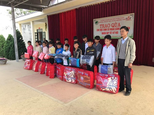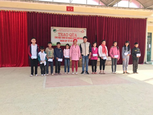 Nhà trường trao quà cho học sinh có hoàn cảnh khó khăn