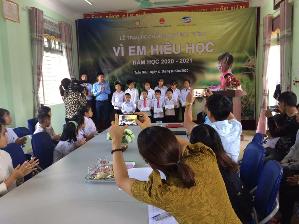 Học sinh nhận học bổng “Vì em hiếu học”