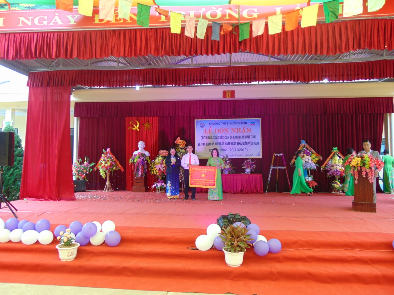 Trường THCS Mường Thín đón nhận Cờ thi đua xuất sắc của UBND tỉnh