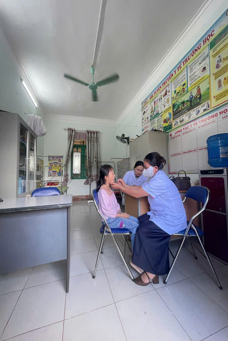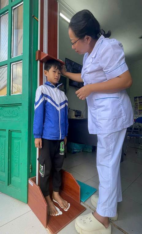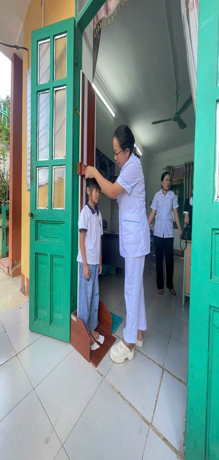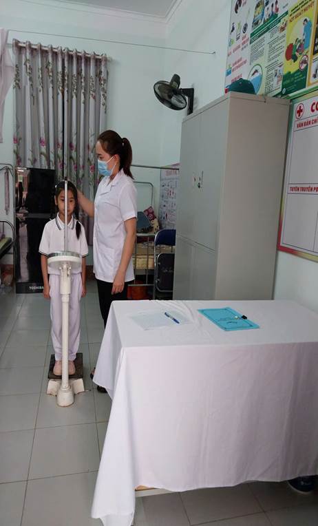 Trong buổi khám sức khỏe, các em được kiểm tra chiều cao, cân nặng, thị lực, răng miệng, tai – mũi – họng,…và được tư vấn những kiến thức bổ ích về vệ sinh cá nhân, phòng tránh bệnh tật học đường và thói quen sinh hoạt lành mạnh.
