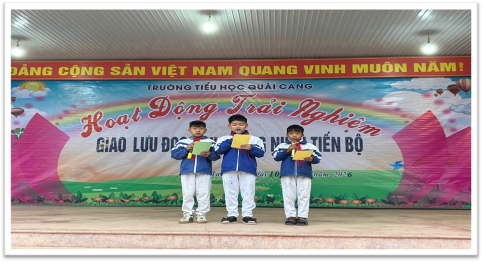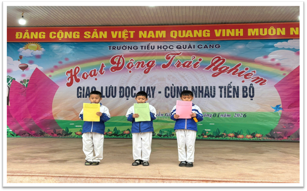 Chương trình giao lưu đọc hay là hoạt động giáo dục có ý nghĩa thiết thực, góp phần thực hiện mục tiêu nâng cao chất lượng giáo dục toàn diện, đặc biệt trong việc tăng cường kỹ năng sử dụng Tiếng Việt cho học sinh tiểu học. Thông qua hoạt động, nhà trường tiếp tục khẳng định vai trò của các hoạt động trải nghiệm, giao lưu trong việc hỗ trợ học sinh phát triển năng lực, phẩm chất theo yêu cầu Chương trình giáo dục phổ thông 2018. Trong thời gian tới, Trường Tiểu học Quài Cang sẽ tiếp tục duy trì, nhân rộng các hoạt động tương tự, gắn với nhiệm vụ năm học và điều kiện thực tế của nhà trường, góp phần nâng cao chất lượng giáo dục và xây dựng môi trường học tập thân thiện, tích cực hơn. Tin bài: Trường Tiểu học Quài Cang