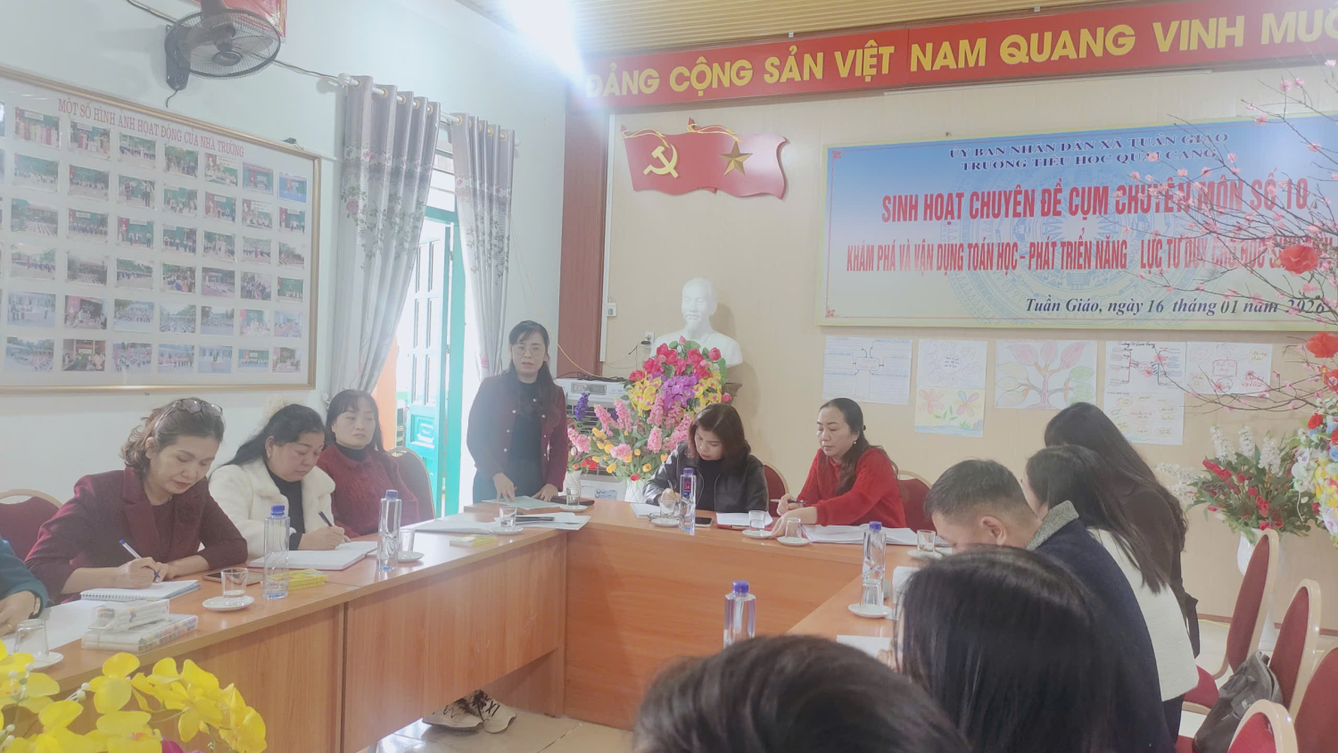 Ngày 16/01/2026, buổi sinh hoạt chuyên môn cấp cụm được tổ chức trực tiếp tại Trường Tiểu học Quài Cang với sự tham gia của cán bộ quản lý, tổ trưởng chuyên môn và giáo viên các trường trong cụm. Tại buổi sinh hoạt, các đơn vị đã tổ chức dạy thực hành các hoạt động Toán học, tập trung vào việc thiết kế hoạt động khám phá, vận dụng, qua đó phát triển tư duy cho học sinh.