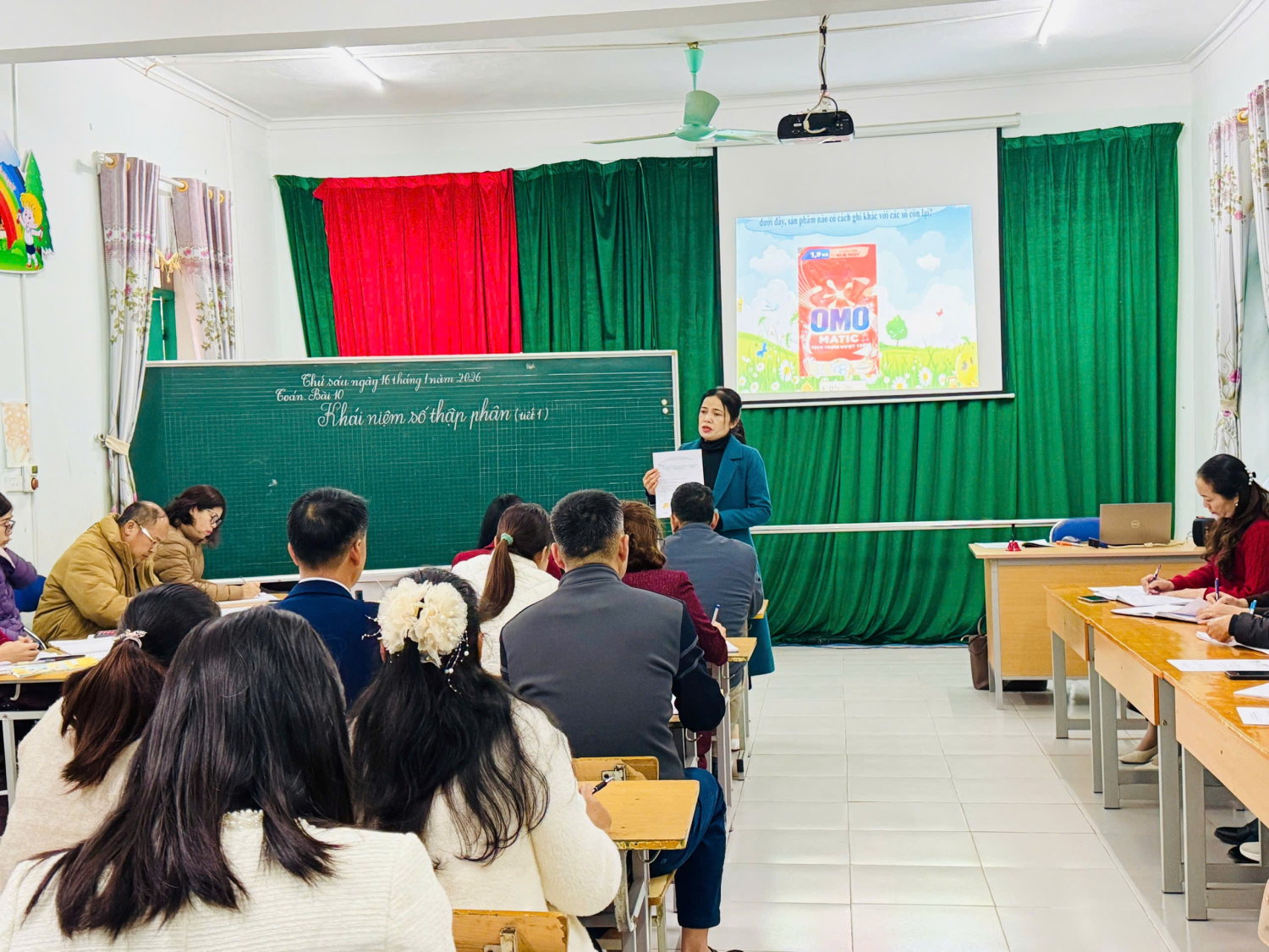Sau các hoạt động dạy thực hành, giáo viên trong cụm cùng trao đổi, thảo luận, phân tích ưu điểm, những điểm cần điều chỉnh và đề xuất giải pháp áp dụng vào thực tiễn giảng dạy tại đơn vị. Không khí sinh hoạt chuyên môn diễn ra nghiêm túc, cởi mở và mang tính chia sẻ cao. Phát biểu tại buổi chuyên đề, đồng chí Phan Thị Thành-Chuyên viên Sở GD&ĐT tỉnh Điện Biên đã biểu dương tinh thần trách nhiệm và sự chuẩn bị nghiêm túc của các nhà trường trong cụm: “Chuyên đề được tổ chức bài bản, đúng định hướng đổi mới và có sự sáng tạo. Tôi ghi nhận và đánh giá cao sự nỗ lực, tinh thần học hỏi, chia sẻ chuyên môn của 10 đơn vị trường trong cụm; đây là nền tảng quan trọng để nâng cao chất lượng dạy học môn Toán ở tiểu học”. Những ý kiến chỉ đạo, động viên của đồng chí Phan Thị Thành là nguồn động lực để đội ngũ cán bộ quản lý, giáo viên trong cụm chuyên môn số 10 tiếp tục đổi mới phương pháp dạy học, nâng cao chất lượng giáo dục theo Chương trình GDPT 2018.